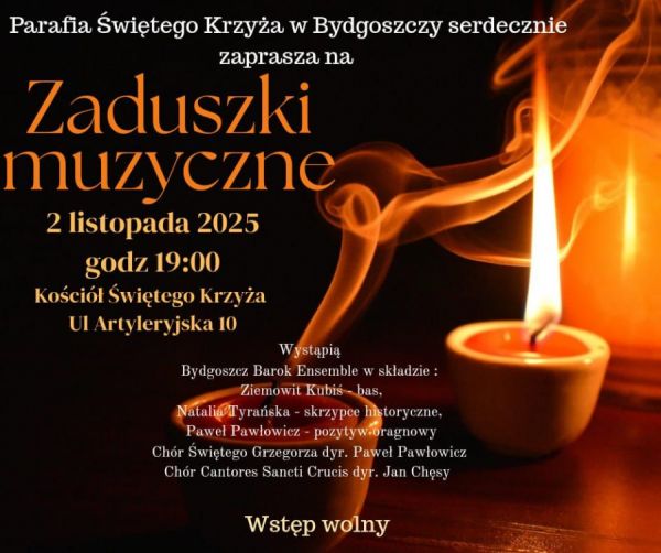 Kochani bardzo serdecznie zapraszamy na ZADUSZKI MUZYCZNE pt." Pamięć nie przemija ..." , które odbędą sie w niedzielę 2 listopada 2025 roku o godzinie 19.00 w Naszym Kościele. Wstęp wolny